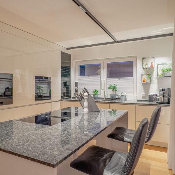 Für die Küche unseres Kunden durften wir ein modernes 48-Volt-Schienensystem realisieren, das Technik und Gestaltung zu einer klaren, zeitgemäßen Lichtlösung verbindet.